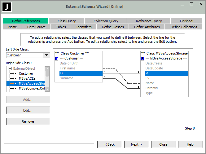Click the Next > button when you have defined all required class references for your external database schema.